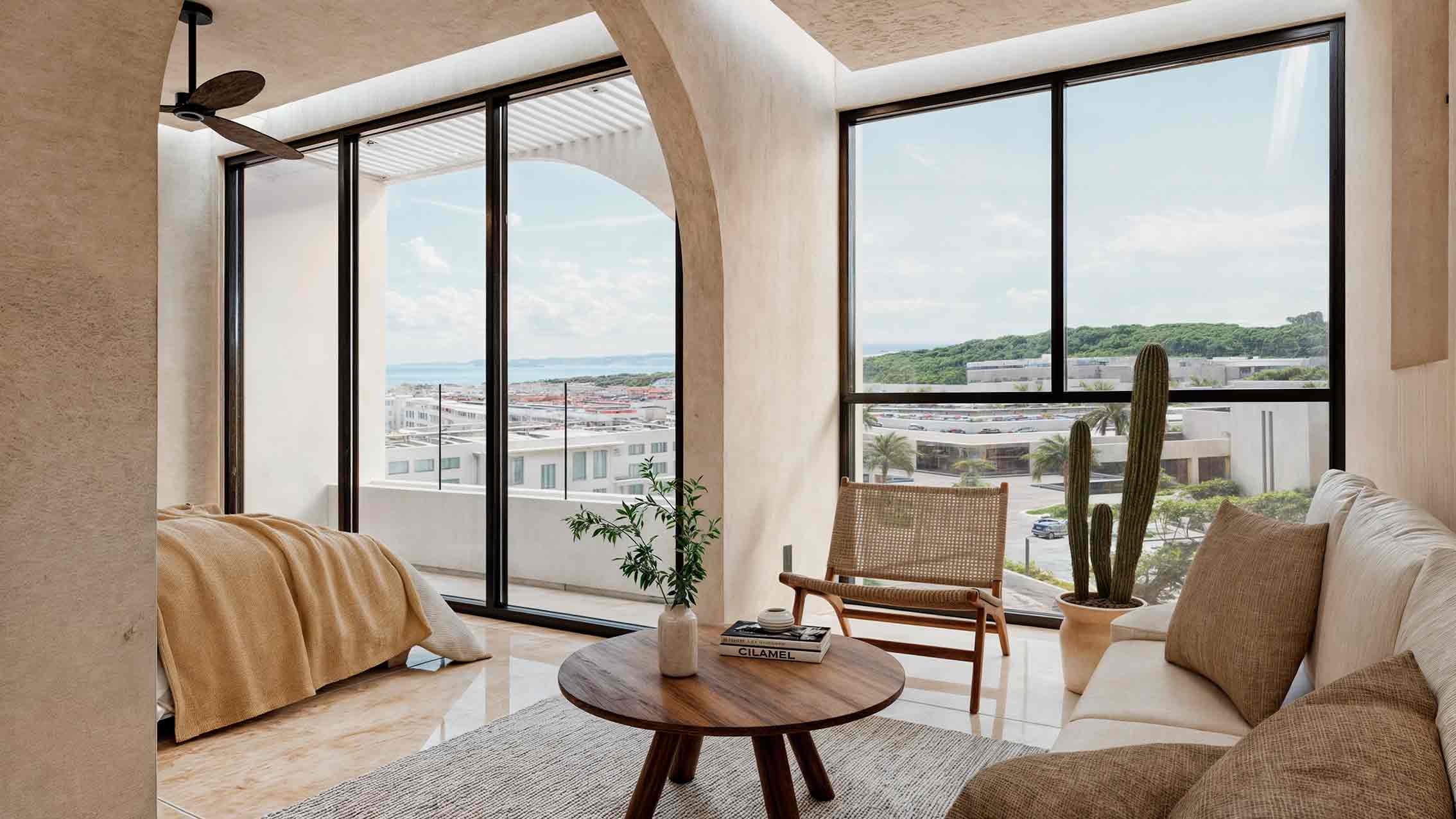 Interiors blend rustic textures with modern accents in a clean, Mediterranean-inspired aesthetic. The result is an elegant, sunlit space that feels both stylish and soothing, perfect for immersing yourself in Playa’s vibrant lifestyle or offering guests a memorable vacation experience.